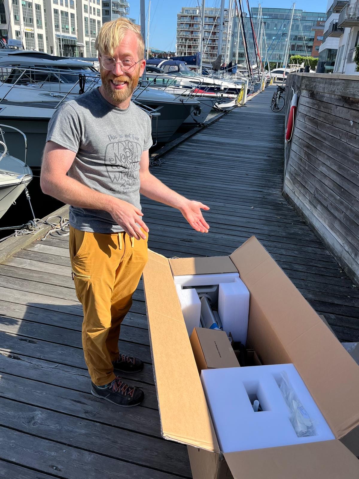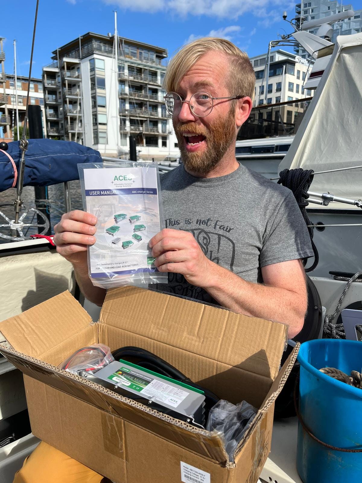 Reader, it did! With only a bit more effort than the previous day (45 kg batteries are heavy, yo), we had all the pieces on the boat before our one-hour parking time was up.